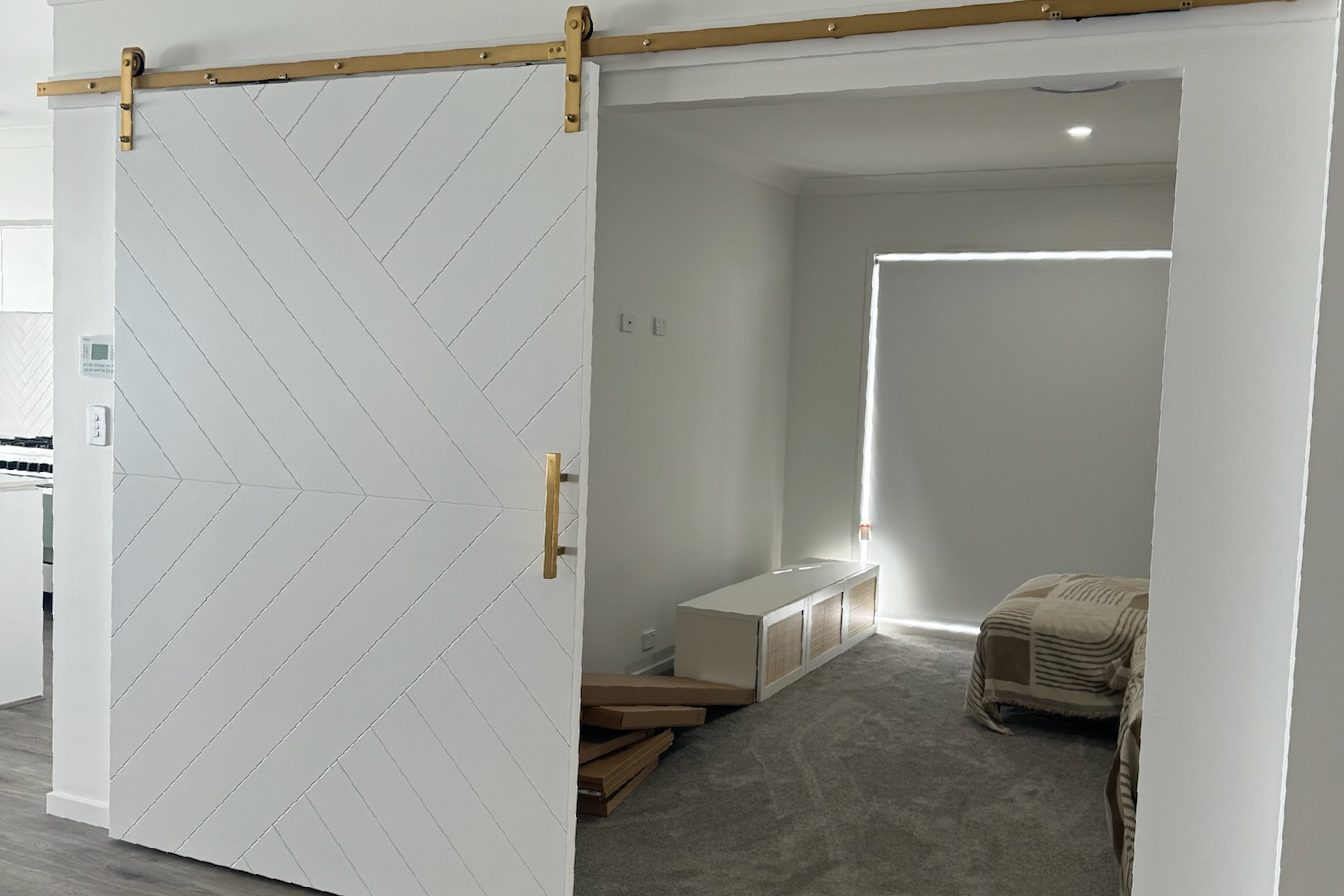 See helpful video on how to install a barn door here.