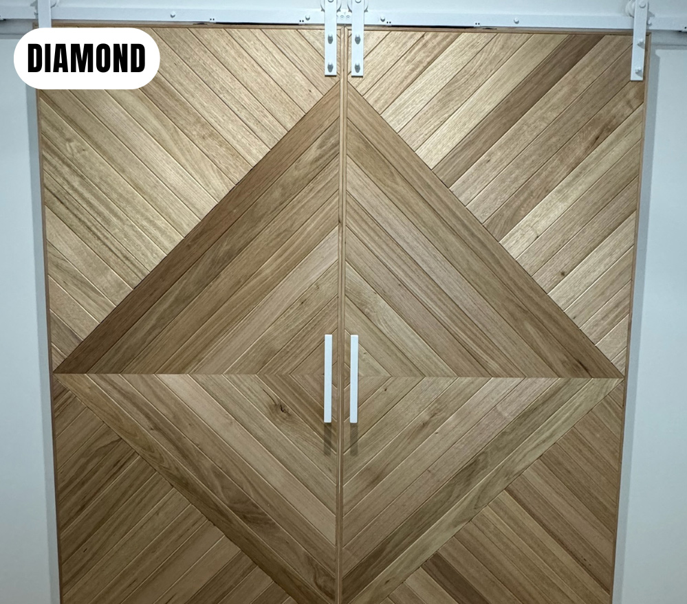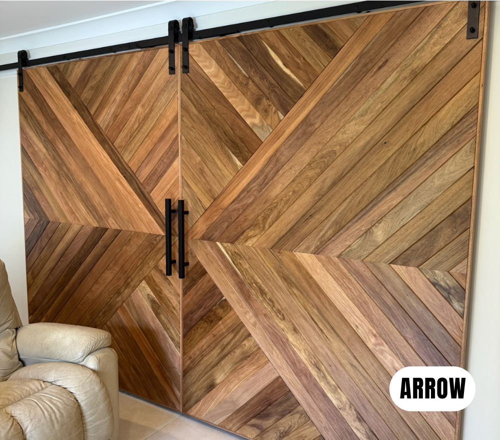 Our herringbone style barn doors exhibit a distinctive design marked by the arrangement of panels in a captivating herringbone pattern, evoking the graceful bones of a herring fish.