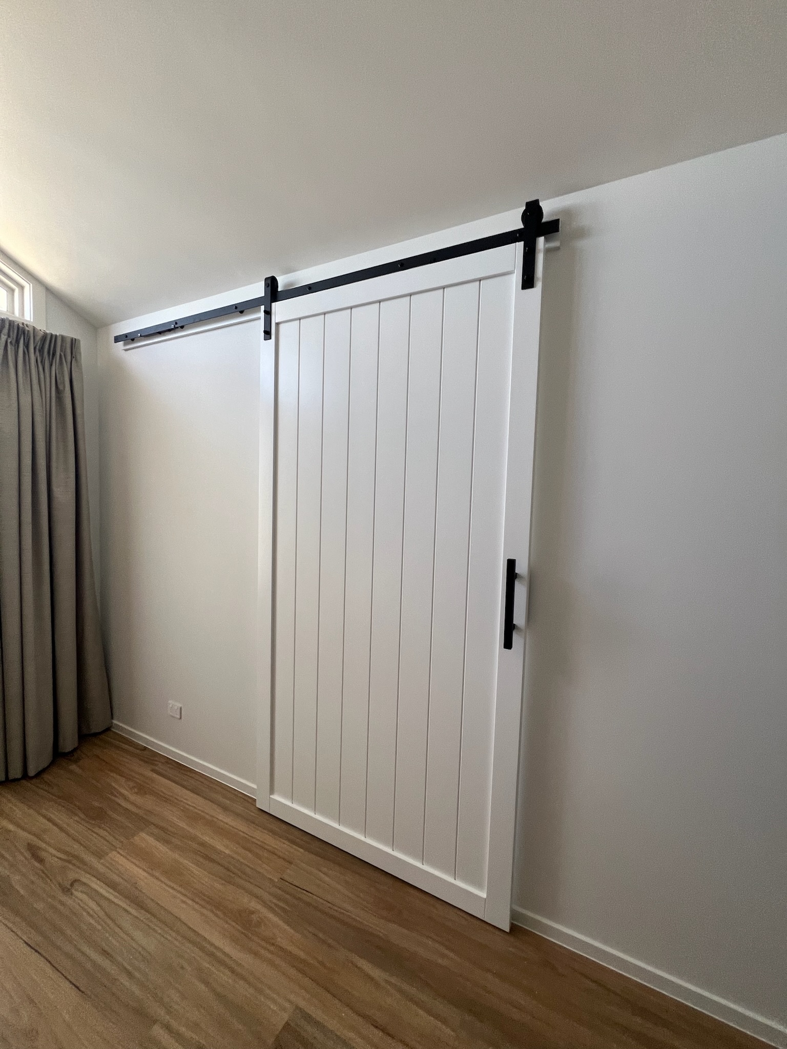See helpful video on how to install a barn door here.